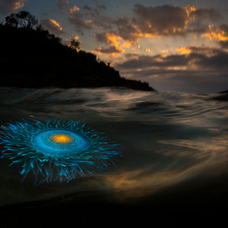 • Like a miniature spinning galaxy on the ocean surface, the Porpita porpita siphonophore.