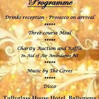 The night will be one not to miss, with a Prosecco drinks reception on arrival, followed by a delicious three course meal. Dinner will be followed by the auction and raffle, with music provided by The Coves Band. Dance the night away with a disco to end the evening.