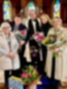 (L-R) Marie Moore (Rectors Warden), Wendy Halligan, Rev Adrian Halligan, Abigail Halligan and Church Reader Sandi McKendry along with gifts presented.Â